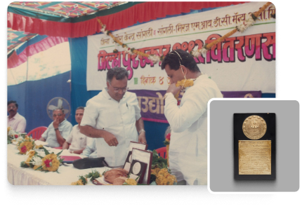On June 4, 1992, Mr. Dinkarrao Patil (Anna) was conferred with the “Best District Businessman” award by the District Industries Centre (Government of Maharashtra) for the year 1992. This award acknowledged Mr. Patil’s exceptional leadership and his role in advancing the business landscape within the district, setting a benchmark for excellence in the industry.