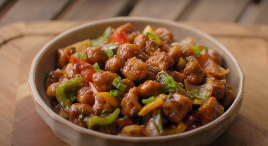 This Spicy Soya Chilli combines crispy fried soya chunks with a fiery mix of Aditi’s Red Chilli Sauce, Dark Soy Sauce, and Green Chilli Sauce for a bold, satisfying dish. Perfect for any occasion!