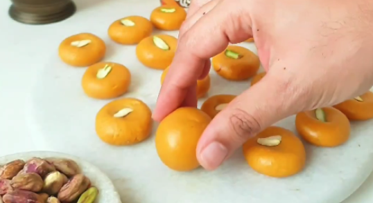 Remove from heat, let it cool slightly, and shape the mixture into small pedas.